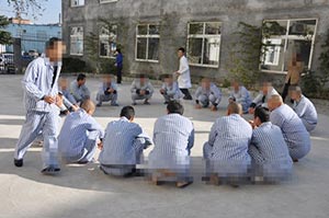病区患者在玩丢手绢集体活动