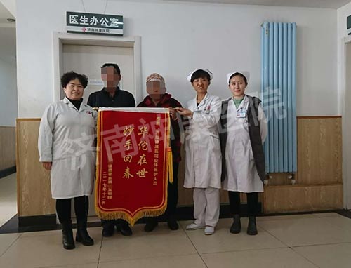 看到疯癫了19年的媳妇,如今能够变得通情达理,被济南神康医院治疗的效果这么好,孙大姐的丈夫和家人从心里对医院充满了感激,为了表达感谢,丈夫和她特意制作了锦旗,一定要感谢神康医院的大夫和护士!