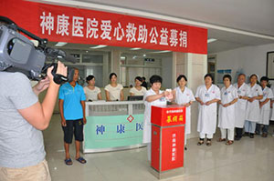 为了让高显臣早日摆脱疾病的折磨和困扰,重新燃起生命之光,2012年8月24日上午10时整,济南神康医院在医院一楼大厅举行一场特殊的爱心募捐活动,医院几百名员工不约而同地加入到捐款的队伍中,五十、一百、三百不等,纷纷献上自己一份炽热的爱心。短短的半个小时里,医院就共募得捐款3万多元。