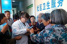 当我们早上八点赶到阳信县信城街道社区卫生服务中心时,大厅里已经站满了前来咨询病情的患者及家属。本来义诊预定的时间是早上九点开始,不过感受到现场患者家属们的热情之后,我们神康医院的副主任医师马主任当即表示提前半小时开始义诊。